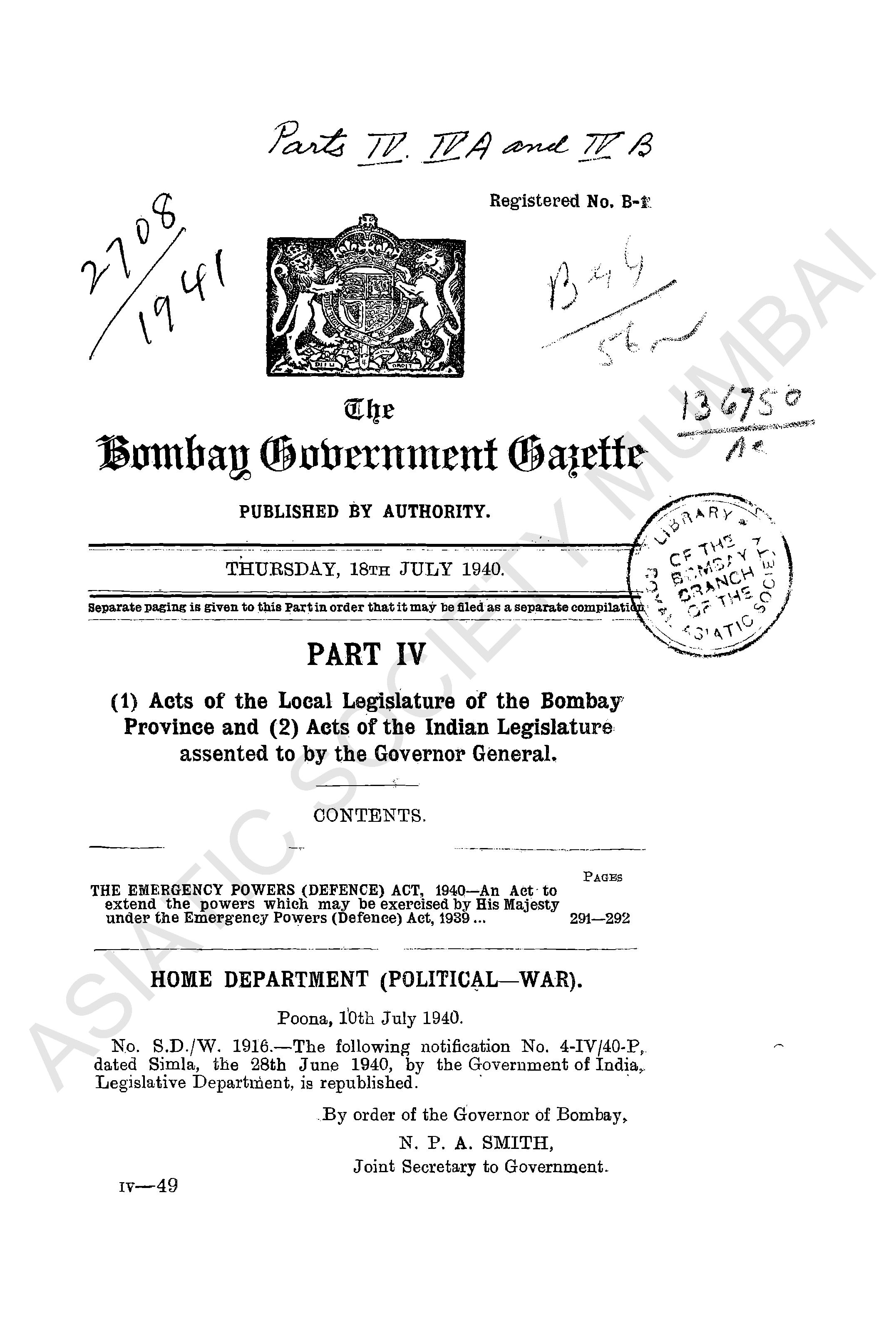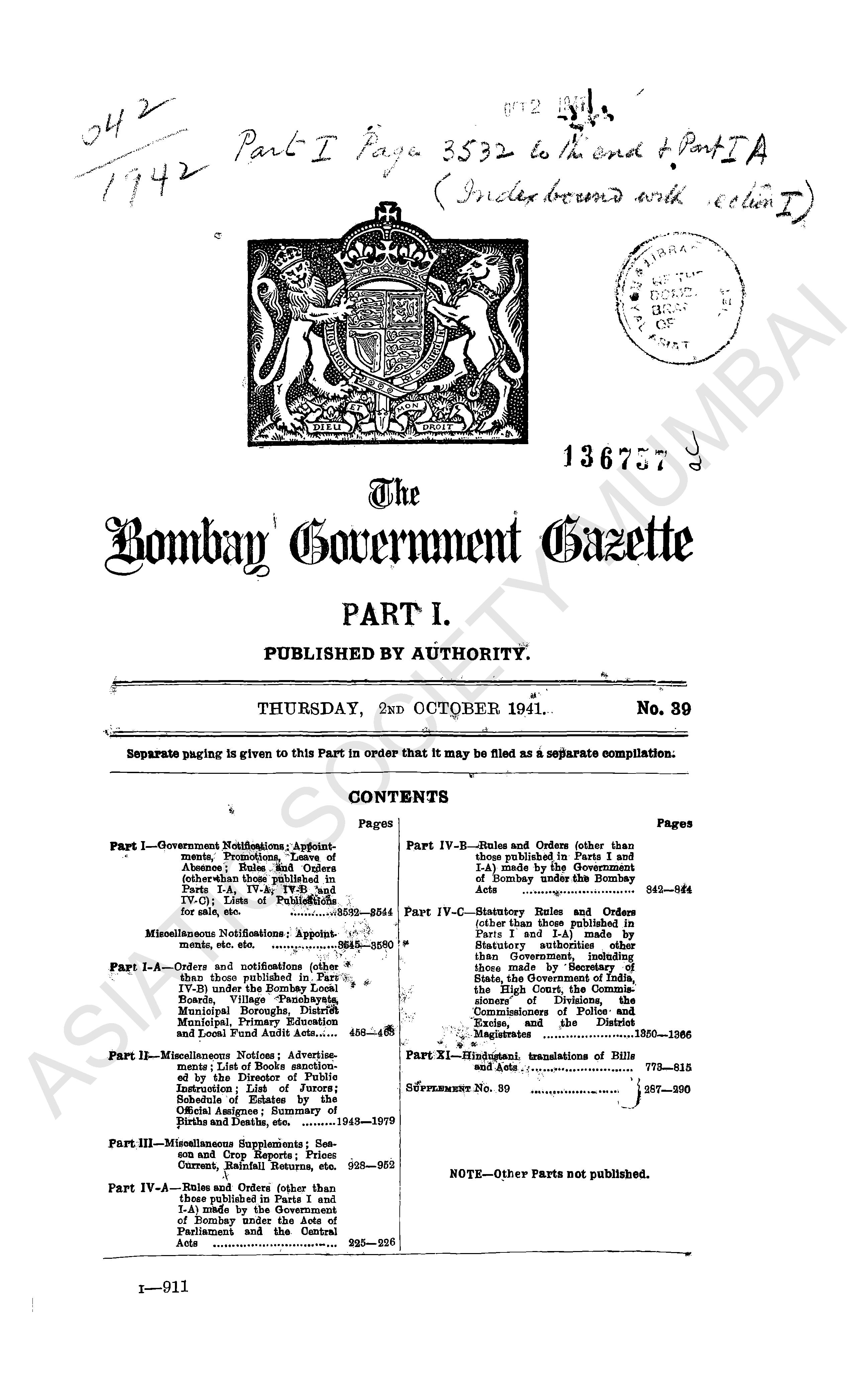 Bombay Government Gazette…, 1940.