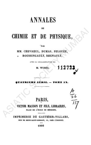 Annales de chimie et de physique, Fourth Series, Vol. IX.