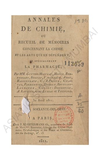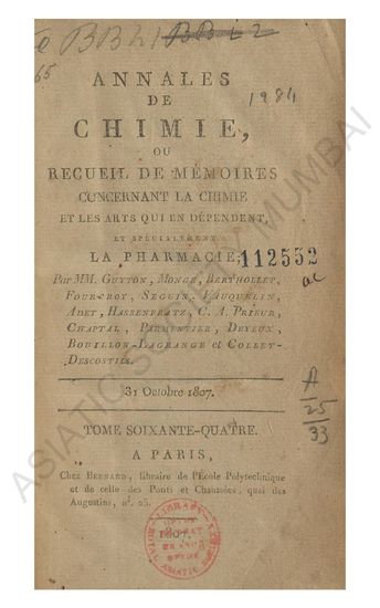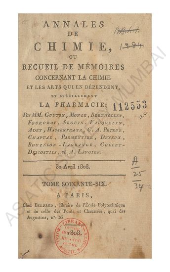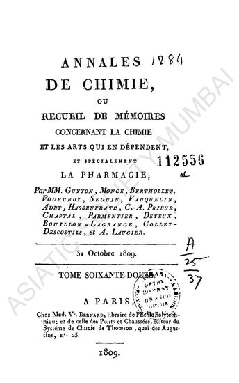 Annales de chimie, ou recueil de mémoires concernant la chimie et les arts qui en dépendent et spécialement la pharmacie.