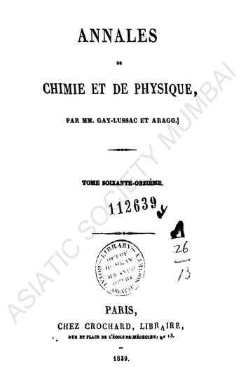 Annales de chimie et de physique, Vol. LXXI.
