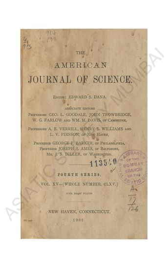 American Journal. of Science Fourth Series Vol XV.