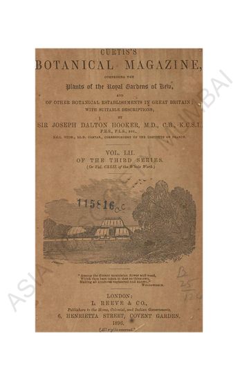 Curtis's Botanical Magazine, comprising the Plants of the Royal Eardens of Kew, Vol. LII, Third Serise.