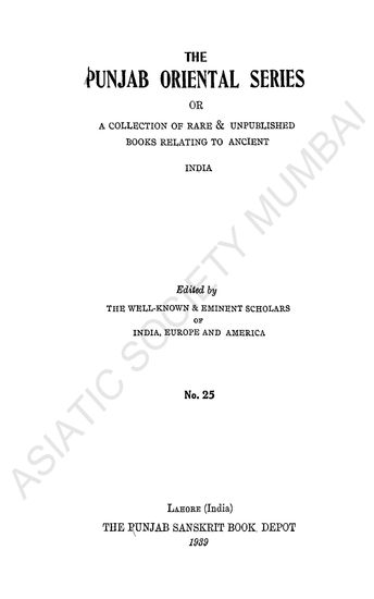 Punjab Oriental Series or a Collection of Rare and Unpublished Books Relating to Ancient India.