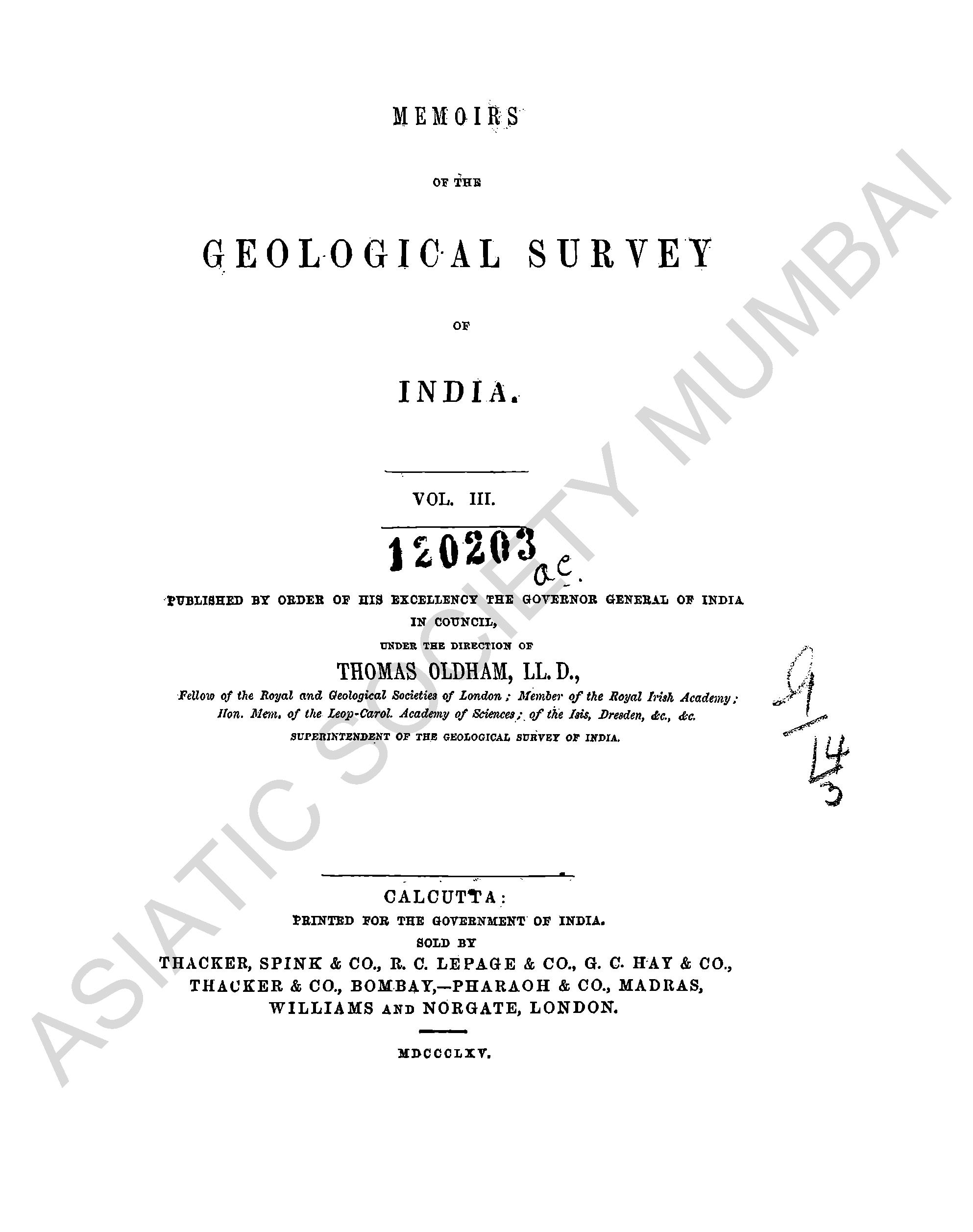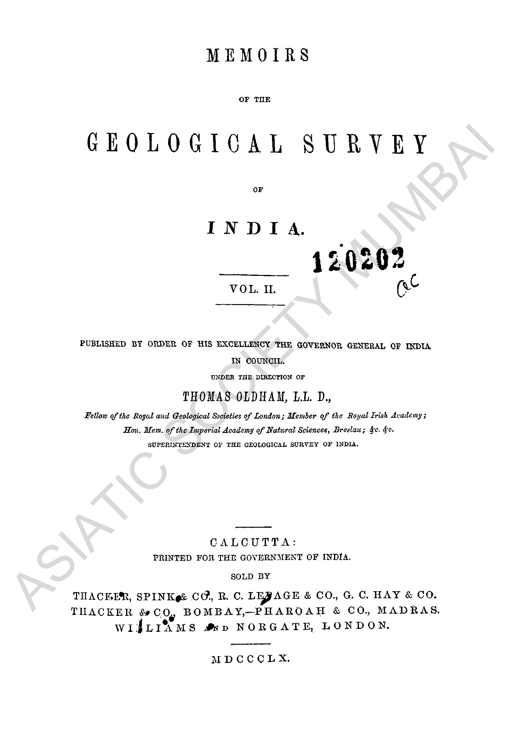 Memoirs of the Geological Survey of India, Vol. II.