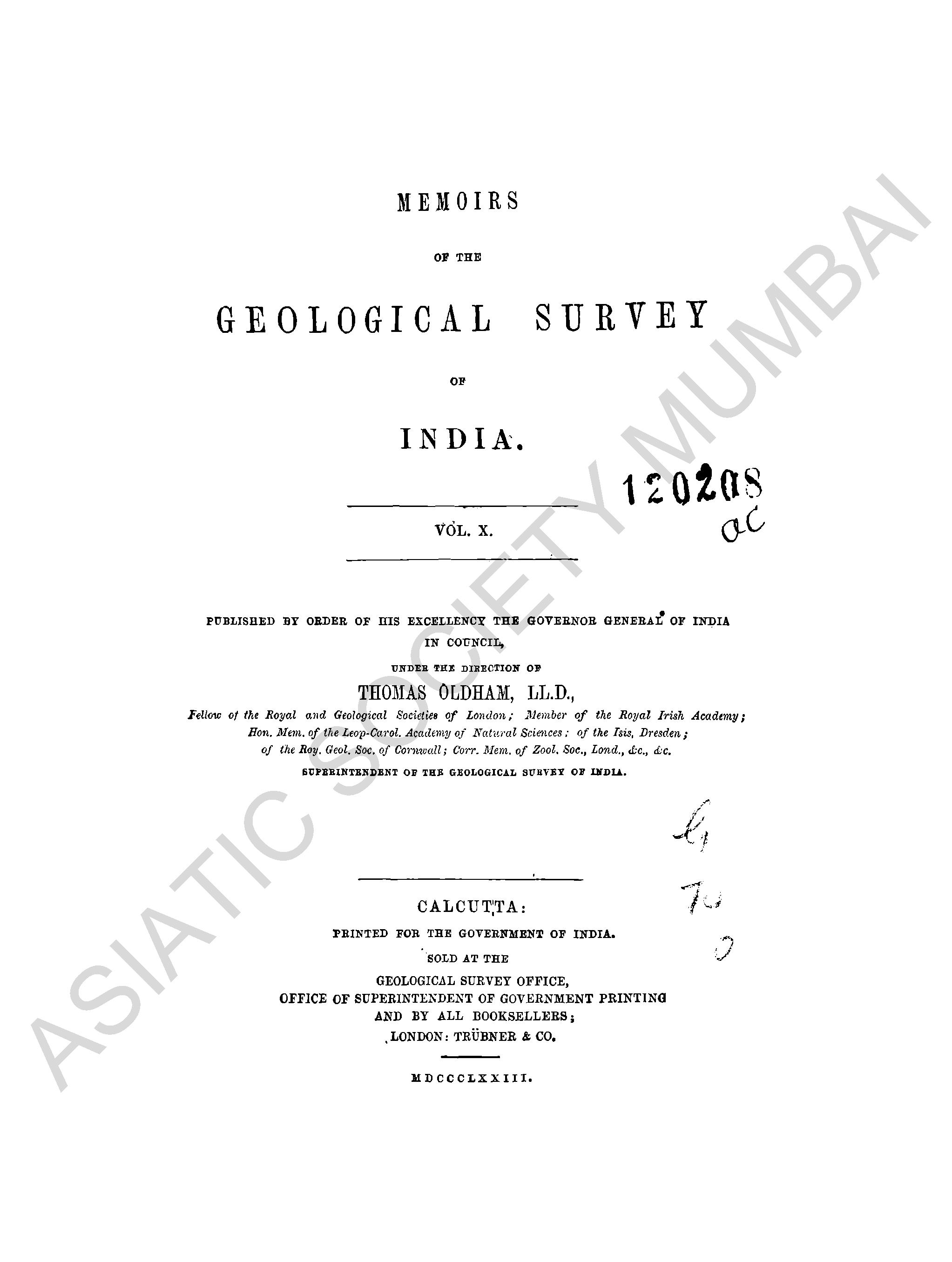 Memoirs of the Geological Survey of India, Vol. X.