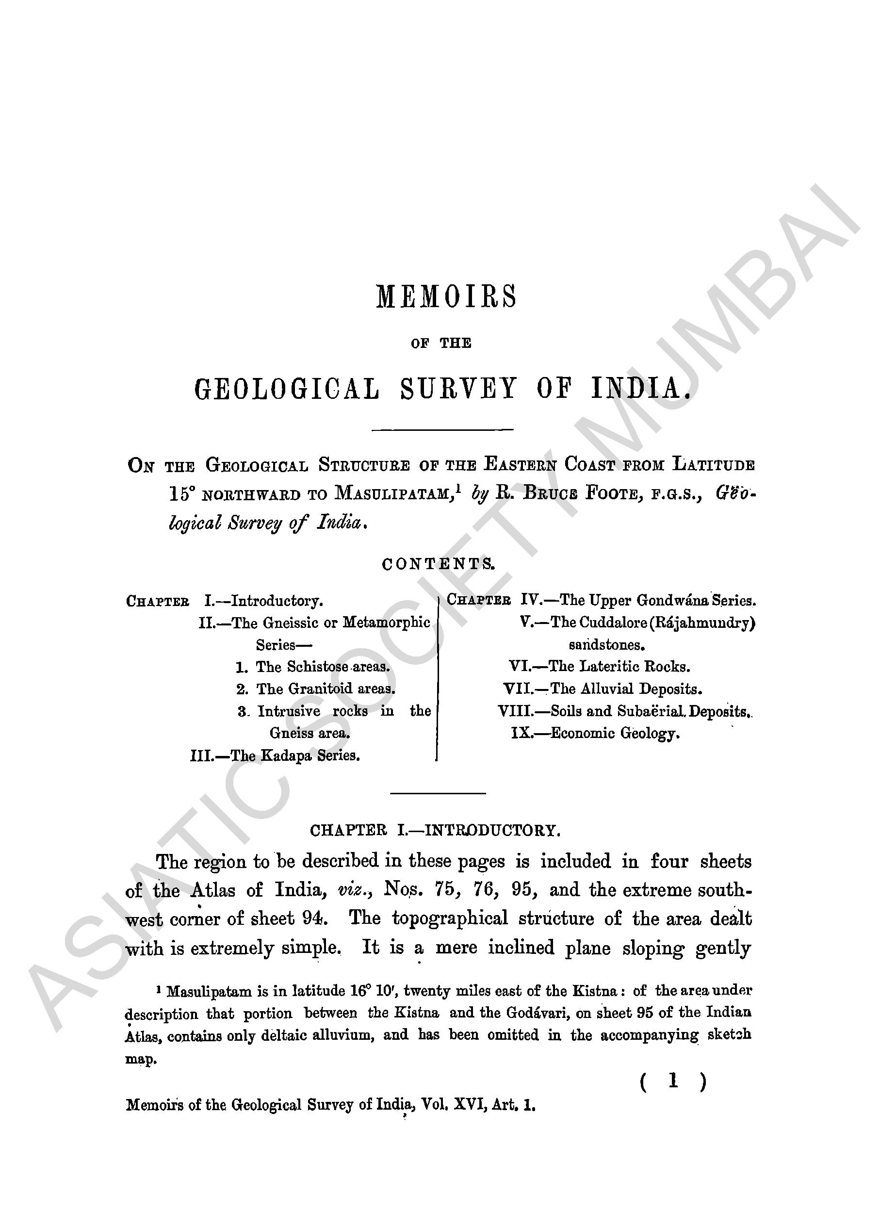 Memoirs of the Geological Survey of India, Vol. XV, Part 1 - 2.