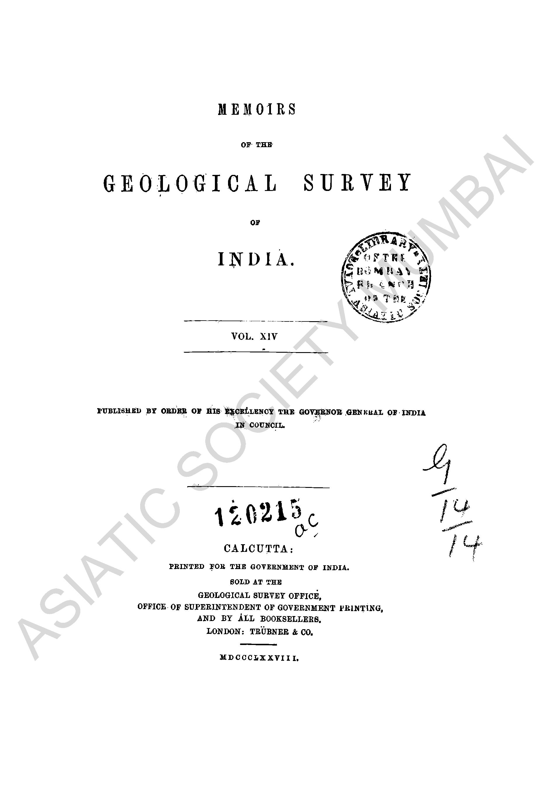 Memoirs of the Geological Survey of India, Vol. XIV.