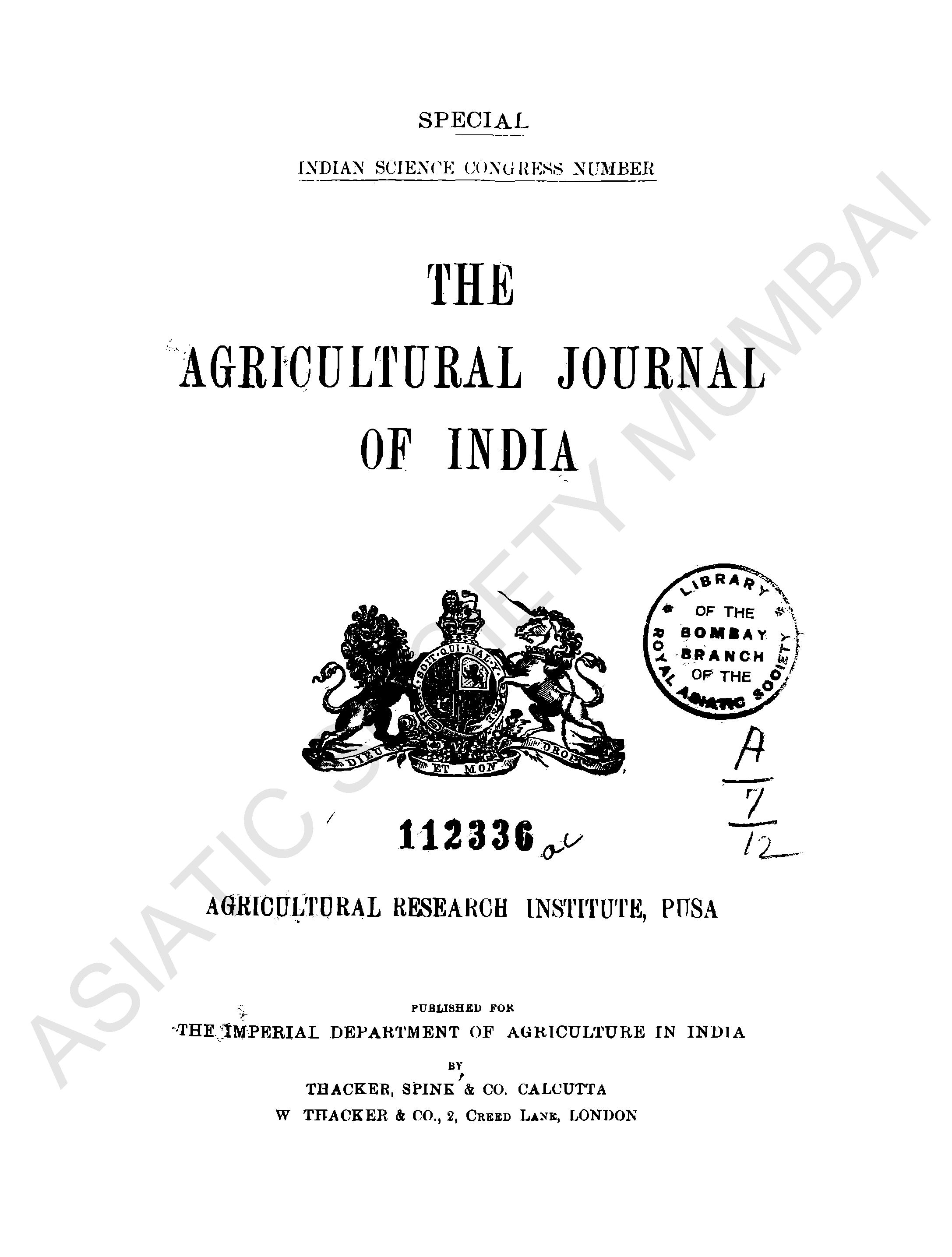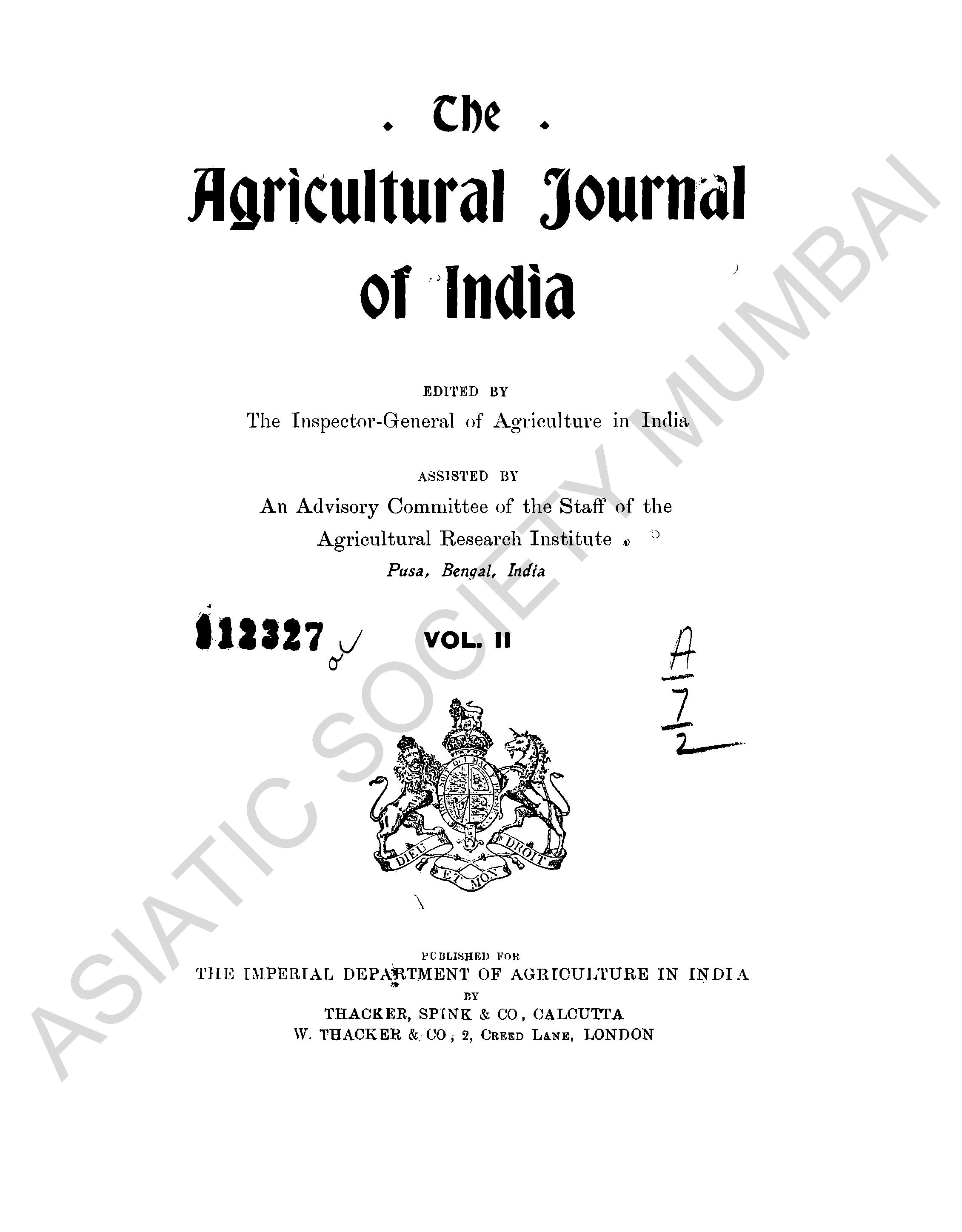 Agricultural Journal of India, Vol. II.