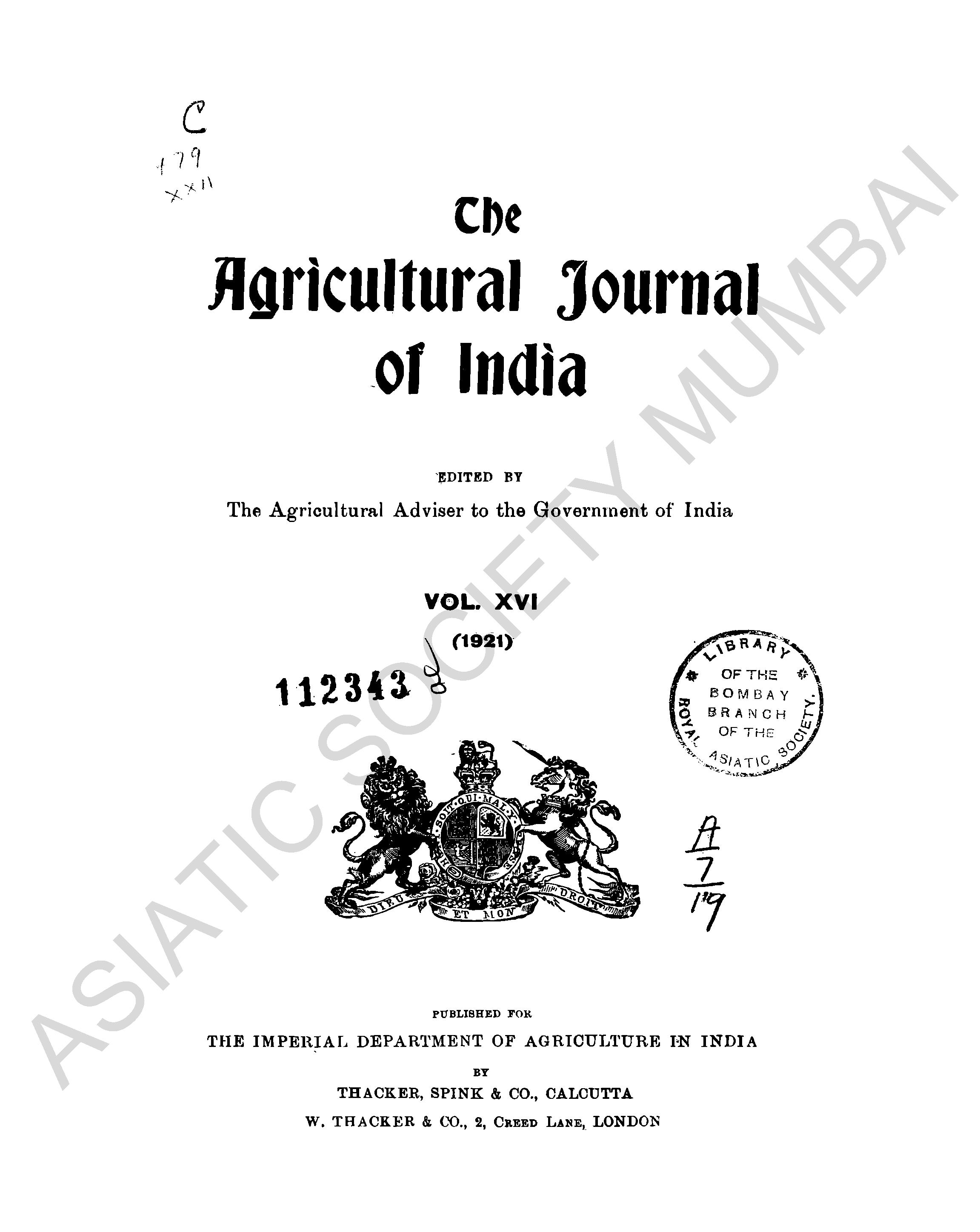 Agricultural Journal of India, Vol. XVI, 1921.