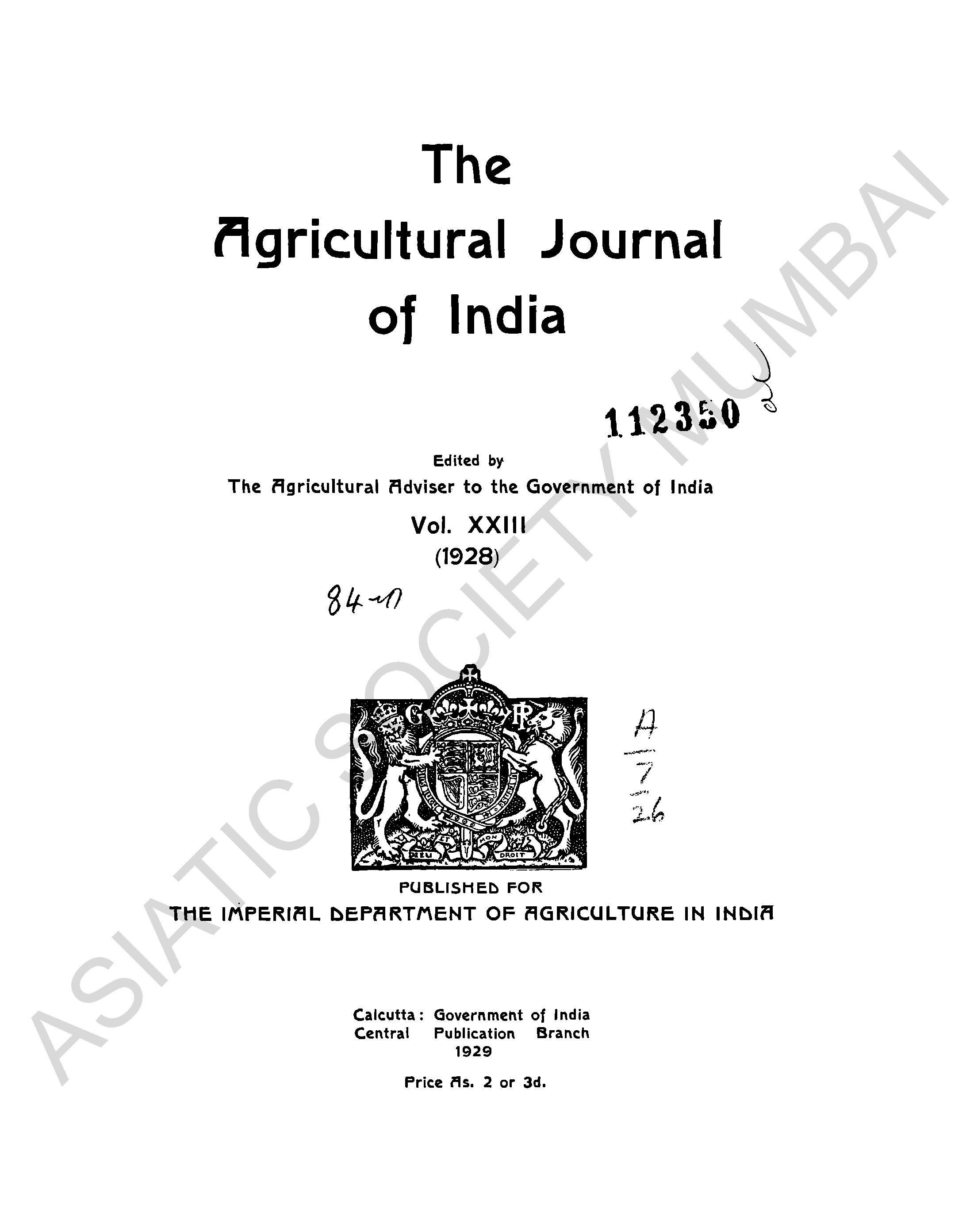 Agricultural Journal of India, Vol. XXIII, 1928.