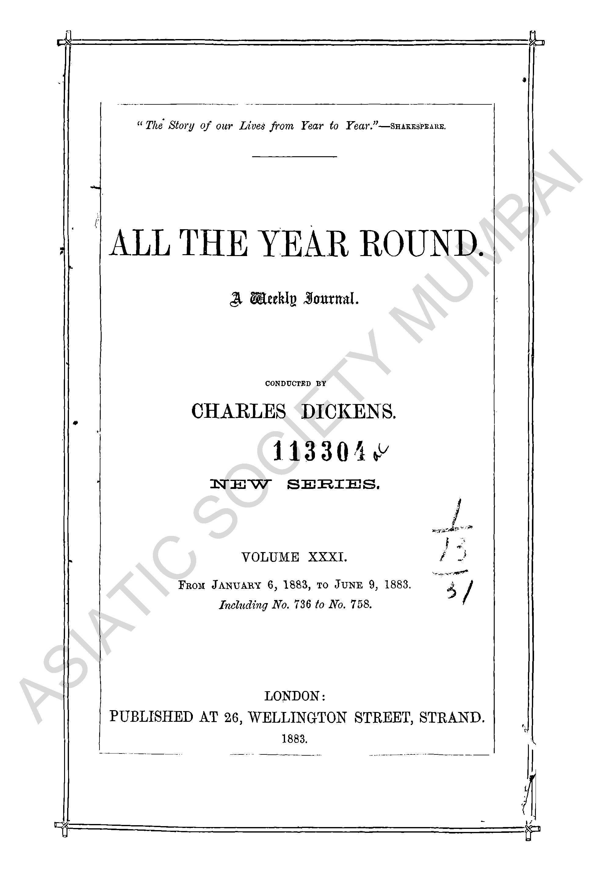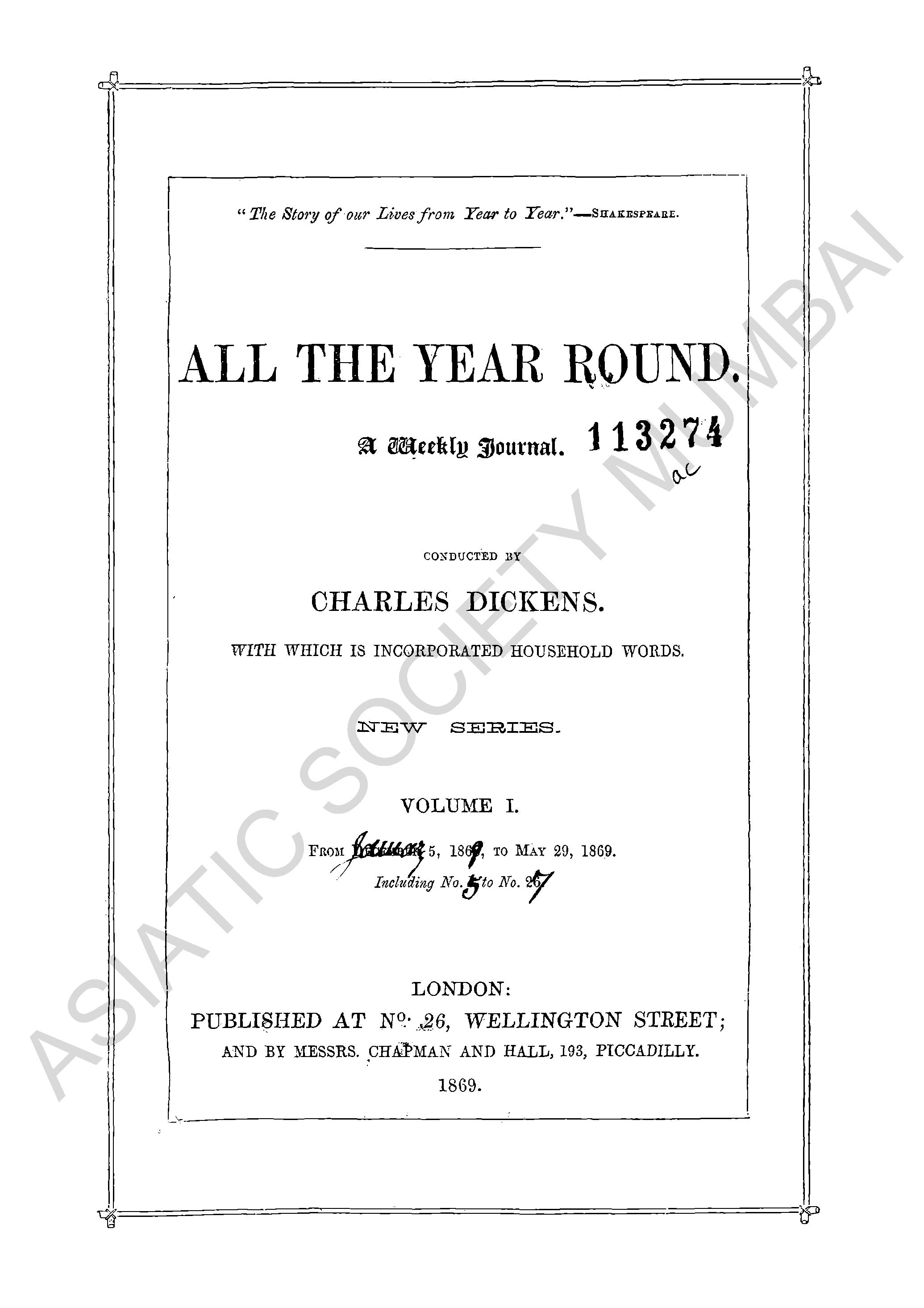 All The Year Round a weekly journal.