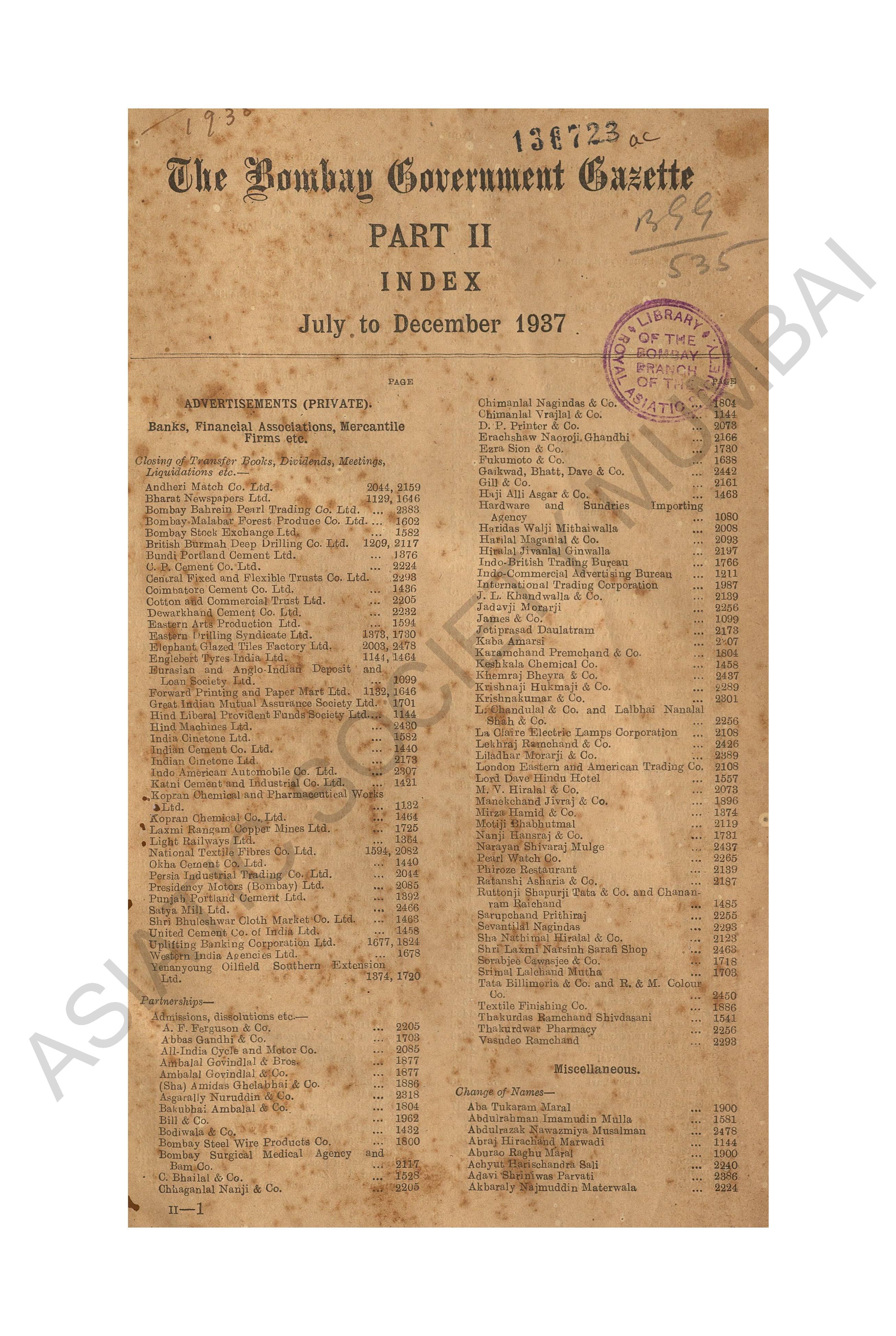 Bombay Government Gazette..., July to December 1937, Part - II.