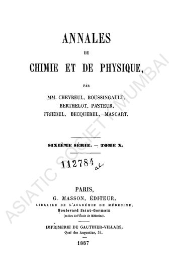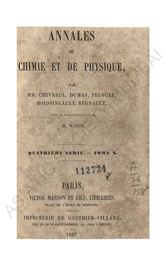 Annales de chimie et de physique, Fourth Series, Vol. X.