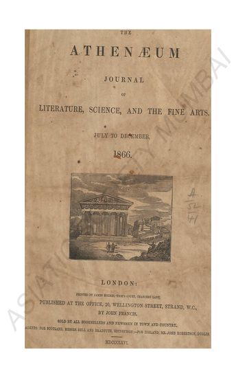 Athenaeum Journal of literature, science, and the fine arts, July to December 1866.