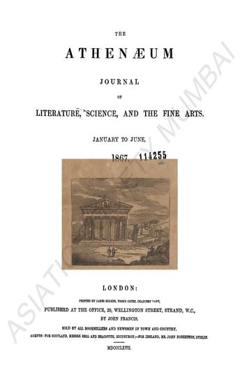 Athenaeum Journal of literature, science, and the fine arts, January to June 1867.