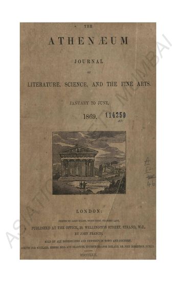 Athenaeum Journal of literature, science, and the fine arts, January to June 1869.