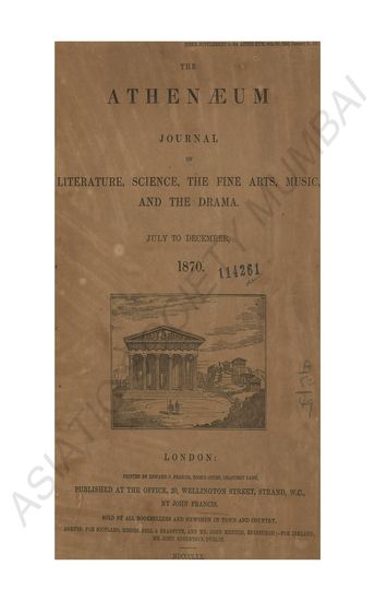 Athenaeum Journal of literature, science, and the fine arts, music, and the drama July to December 1870.