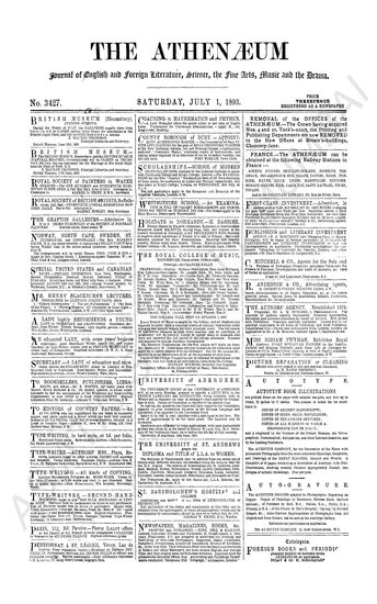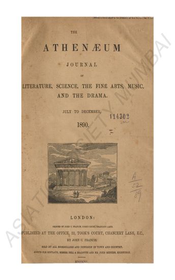 Athenaeum Journal of literature, science, and the fine arts, music, and the drama July to December 1890.