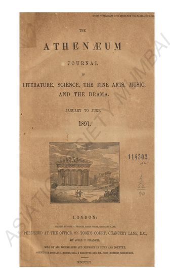 Athenaeum Journal of literature, science, and the fine arts, music, and the drama January to June 1891.