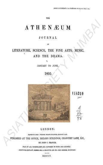 Athenaeum Journal of literature, science, and the fine arts, music, and the drama January to June 1895.