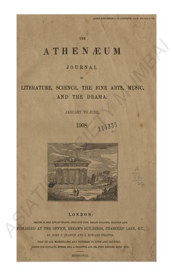 Athenaeum Journal of literature, science, and the fine arts, music, and the drama January to June 1908.