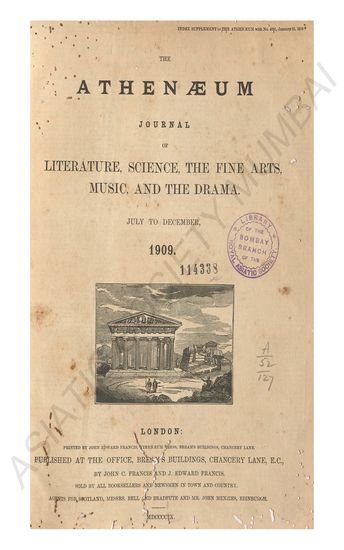 Athenaeum Journal of literature, science, and the fine arts, music, and the drama July to December 1909.