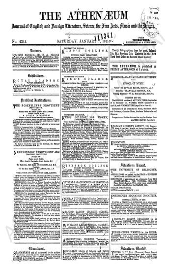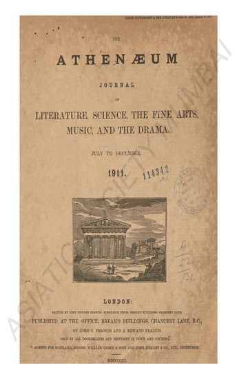 Athenaeum Journal of literature, science, and the fine arts, music, and the drama July to December 1911.