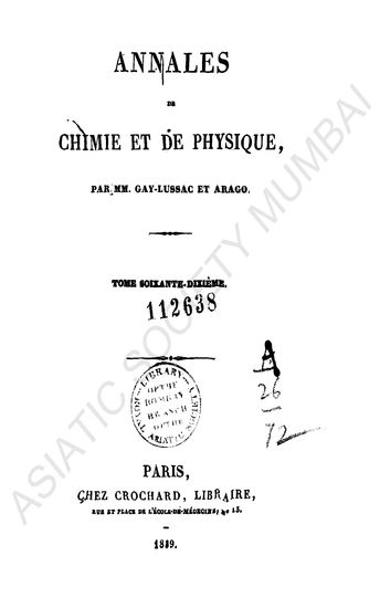 Annales de chimie et de physique, Vol. LXX.