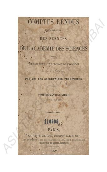 Comptes Rendus Hebdomadaires Des Seances De L'Academie Des Sciences, Vol. Seventieth anuary- June 1870.