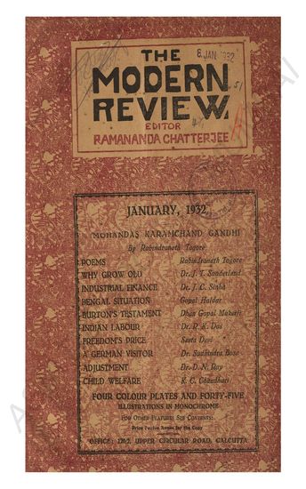 Modern Review a Monthly Review and Miscellany Vol LII. Numbers 1 to 6. July to December, 1932.