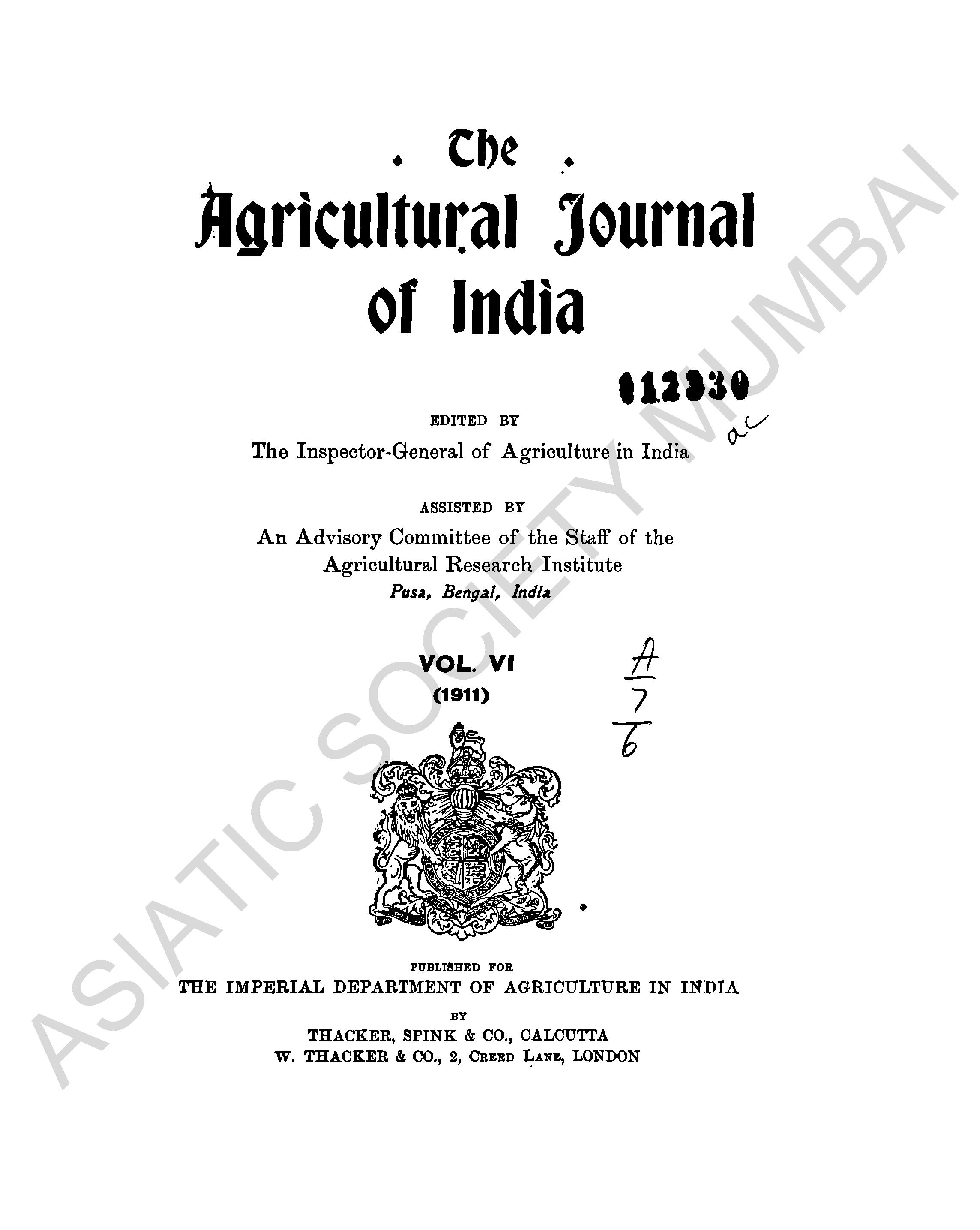 Agricultural Journal of India, Vol. VI, 1911.