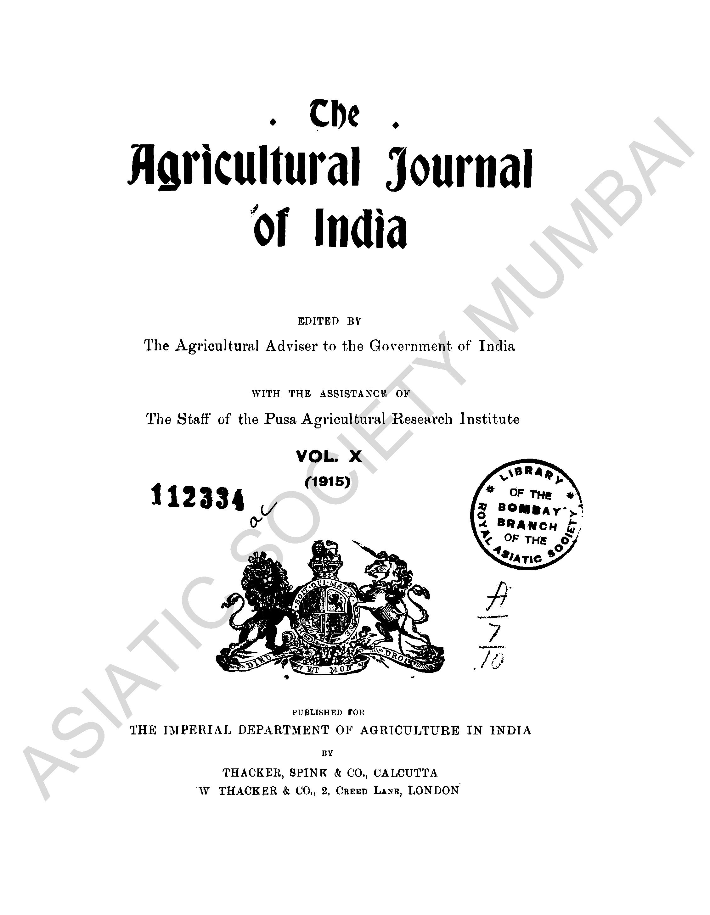 Agricultural Journal of India, Vol. X, 1915.