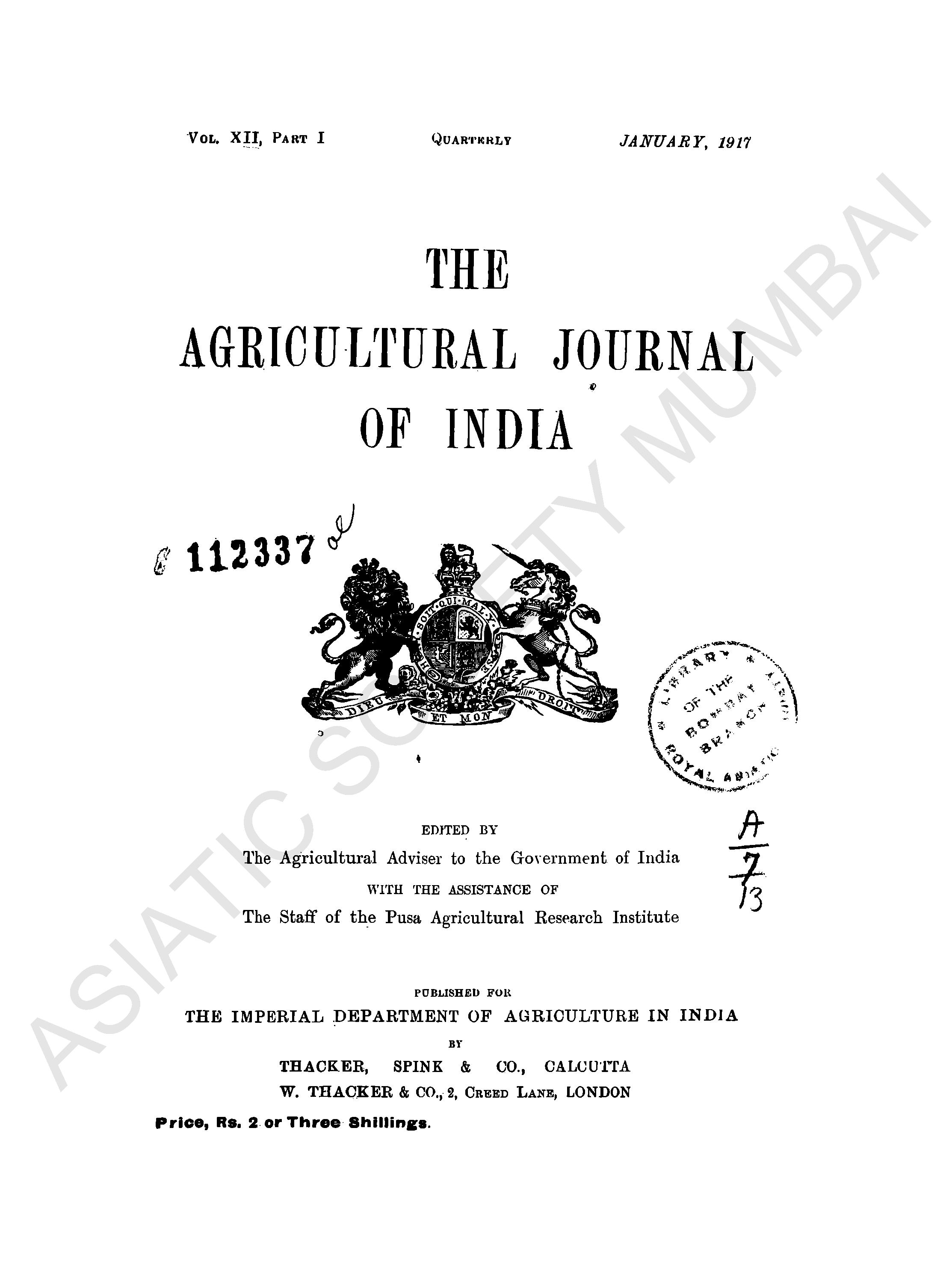 Agricultural Journal of India.