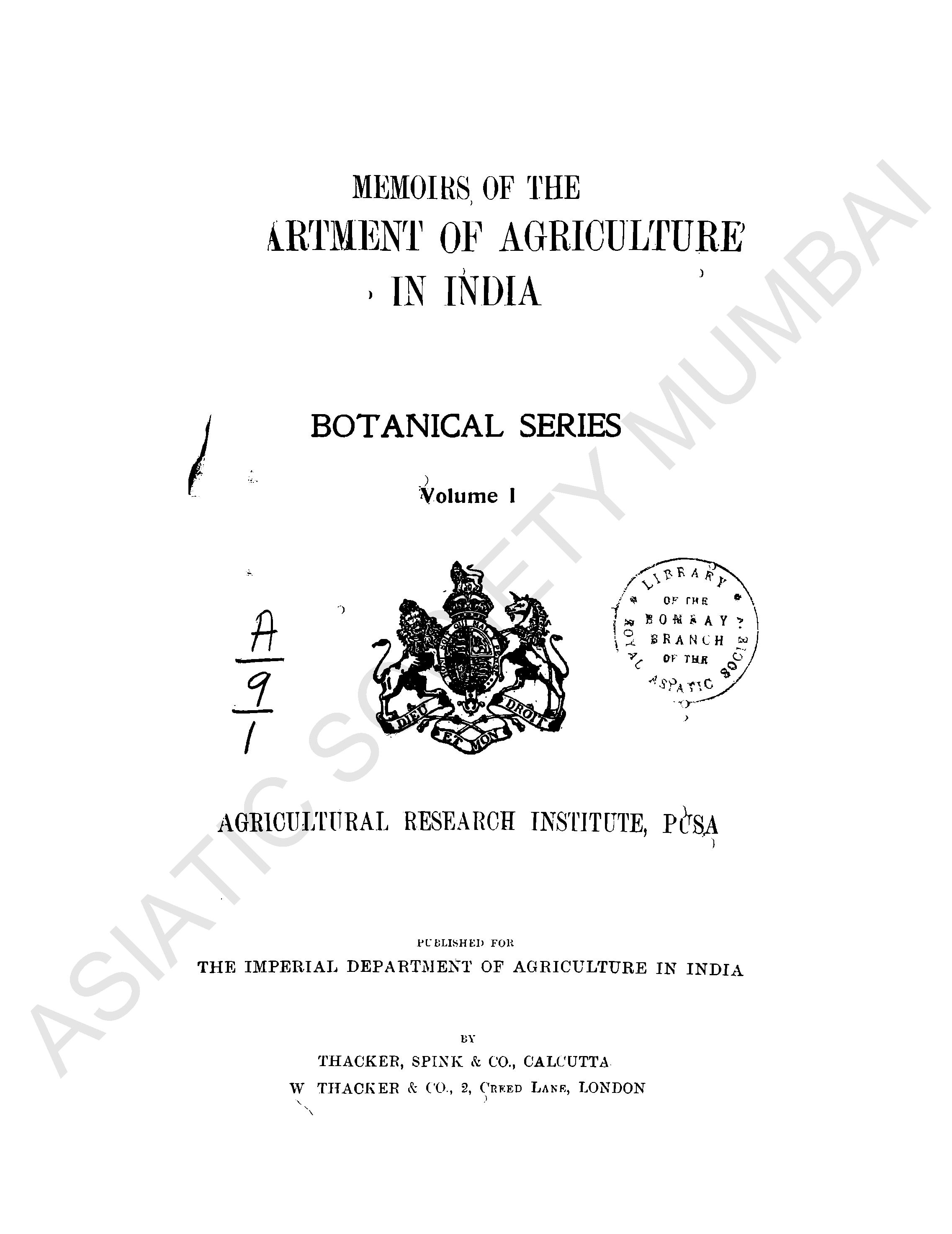 Memoirs of the Department of Agriculture in India.