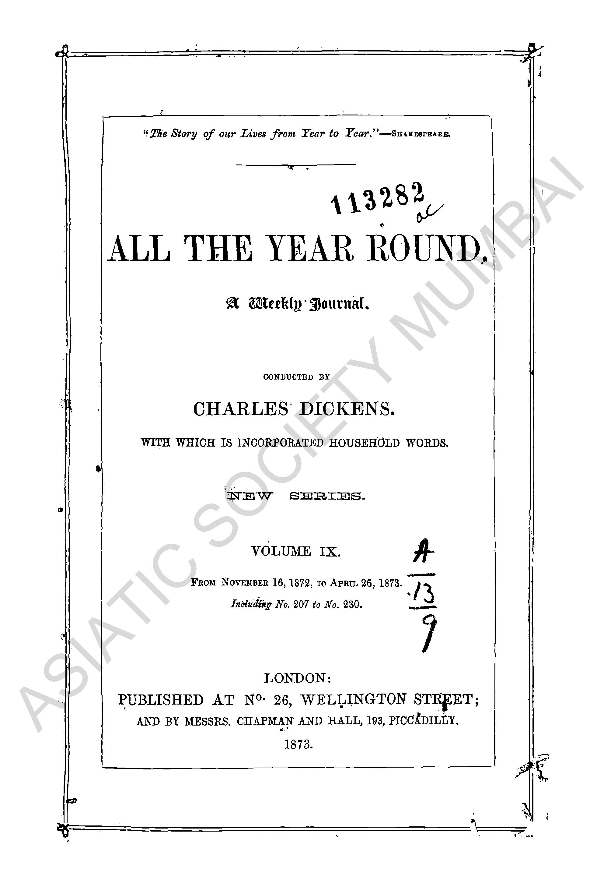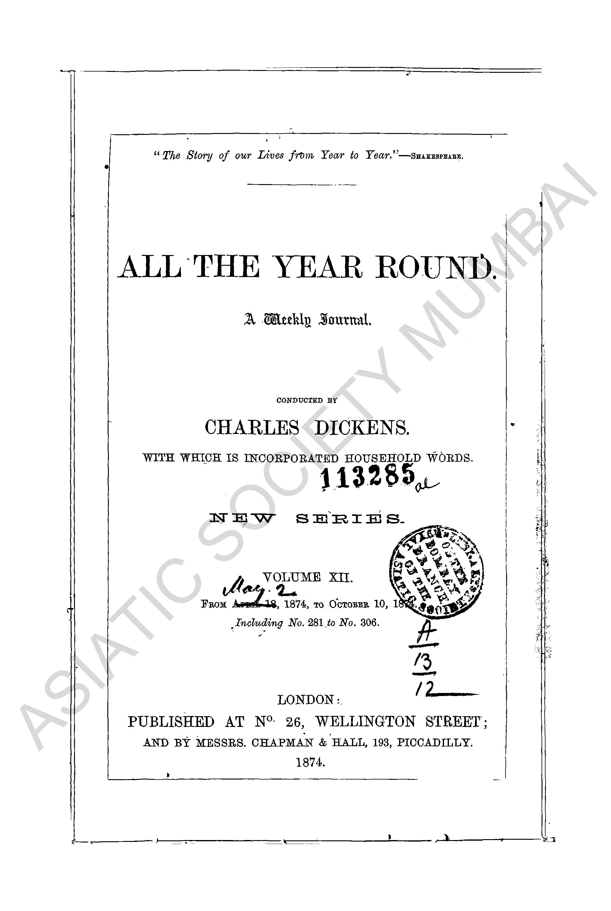 All The Year Round a weekly journal.