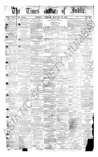 The Times Of India, 22 January 1872