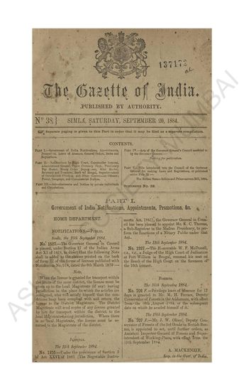 The Gazette of India, No. 38, September 20, 1884.