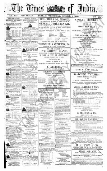 The Times Of India, 1 October 1884