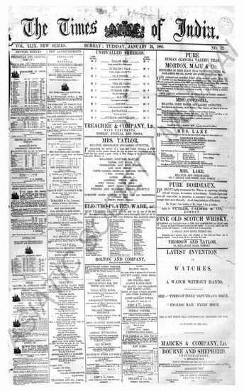 The Times Of India, 26 January 1886
