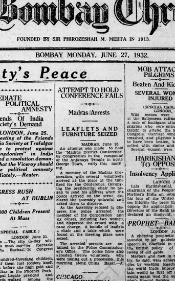 The Bombay Chronicle, 27 June 1932