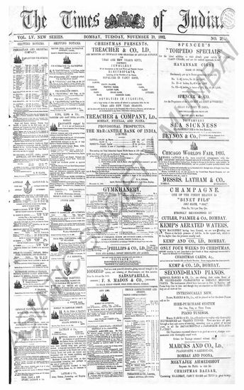 The Times Of India, 29 November 1892