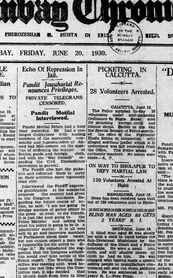 The Bombay Chronicle, 20 June 1930