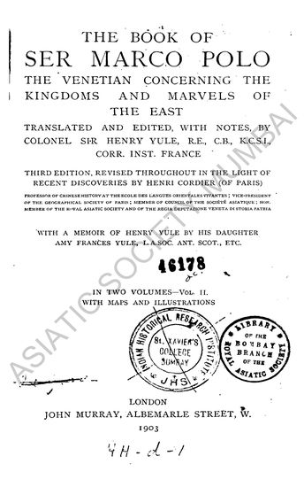 | Author | : | Polo, Marco Yule, Henry Sir Col. (Ed. & Tr.) Cordier, Henri |