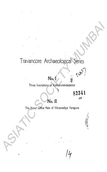 Travancore Archaeological Series No. I-Three Inscriptions of Kokkarundadakkar, No. II. the Huzur Office Plate of Vikramaditya Varaguna