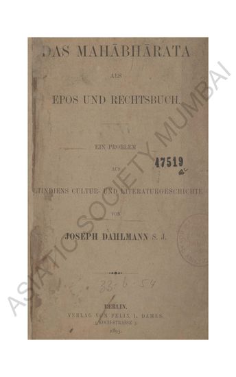 | Author | : | Mahabharata Dahlmann, Joseph |