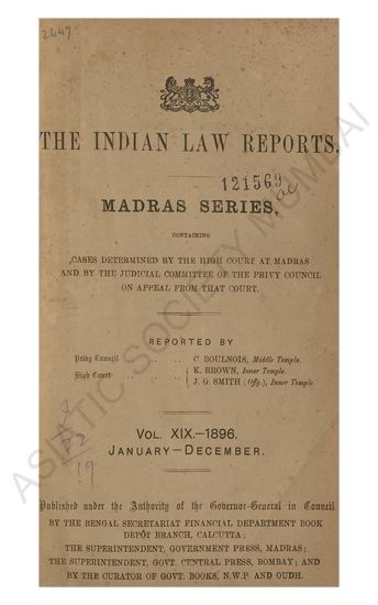 Indian Law Reports, Madras Series Containing Cases Dete ...