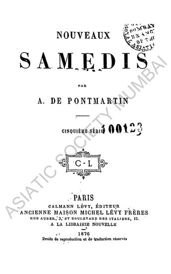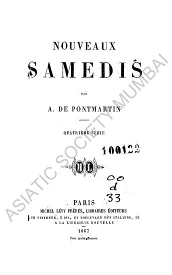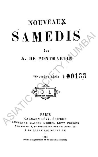 | Publisher | : | Michel Levy Freres, Editeurs |