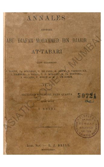 | Author | : | Tabari, Abu Jafar Mohammad Ibn Juarir Goeje, M. J. de (Ed.) Houtsma, M. Th. |