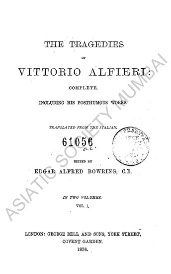 | Author | : | Alfieri, Vittorio Bowring, Edgar Alfred (Ed.) |