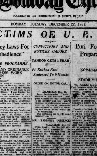 The Bombay Chronicle, 22 December 1931